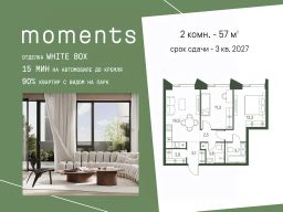 Продается 2-к. квартира номер 1234 общей площадью 57 кв.м. на 26-м этаже 34 этажного дома, корпус 2.2. С отделкой White Box.