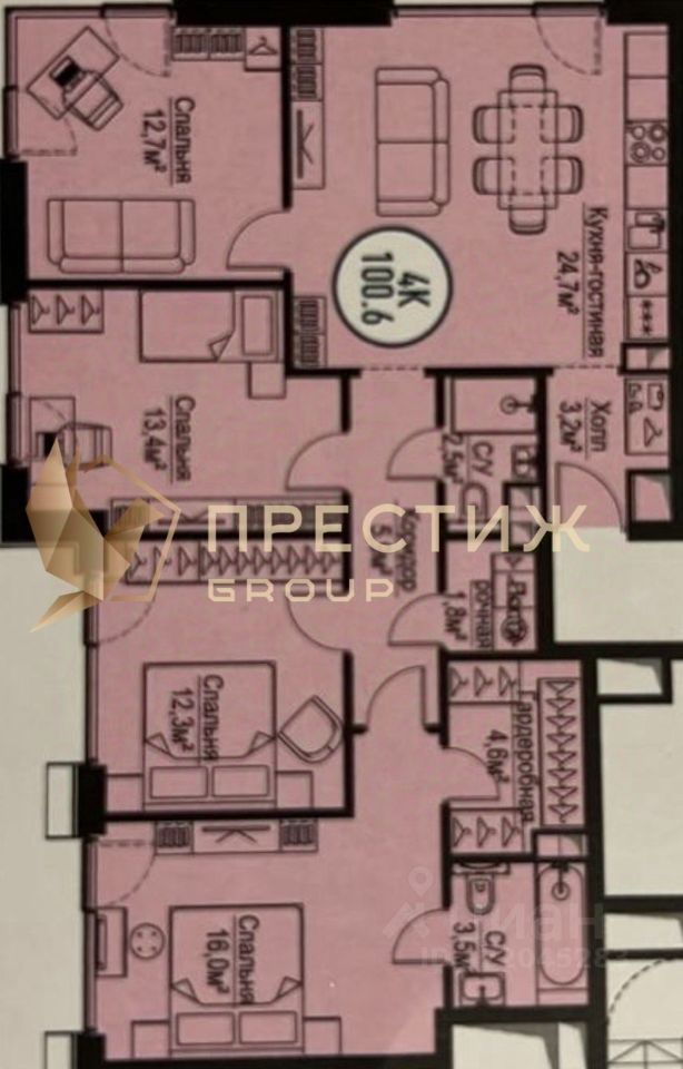 Эксклюзивно от АН "Престиж". Быстрый показ! Продаётся 4-комнатная квартира в ЖК "Метрополия", башня "Флоренция" (сдана в 2024 году). - Общая площадь: 100,6 м² - Жилая площадь: 54,4 м² - Кухня: 24,7 м² - Этаж: 19/30 - Монолитный дом - Квартира в бетоне — возможность реализовать собственный дизайн Документы: - Приобреталась без ипотеки и материнского капитала - Один собственник - Свободная продажа - Быстрый выход на сделку - Готовы к торгу О жилом комплексе "Метрополия" Коллекция лучших решений из мировых мегаполисов. Каждый корпус выполнен в индивидуальном стиле, дизайнерские лобби продуманы до мелочей. Высотные здания образуют благоустроенный двор на 4,6 га с деревьями, клумбами и современным ландшафтным дизайном. Инфраструктура, школы, кафе, зоны отдыха и сервисы Образовательная инфраструктура: - Детский сад Beksly, открыт с 1 сентября 2022 года, рассчитан на 75 воспитанников. - В корпусах "Singapore" и "Hong Kong" II очереди запланирован детский сад на 187 мест. - Государственный образовательный комплекс, включающий школу на 400 учащихся и детский сад на 150 мест, строится по адресу Волгоградский проспект, владение 32/4. Кафе, рестораны, сервисы и торговая инфраструктура: - На первых этажах корпусов — магазины здорового питания, салоны красоты, пункты выдачи маркетплейсов, рестораны и кафе. - В районе ЖК расположены кафе и рестораны: кафе PapaGyros, ресторан "Олива", кальян-бар 2man, ресторан BrownBar. Зоны отдыха и сервисы на территории: - Собственные детские площадки для разных возрастов. - Спортивные площадки: зона воркаута, площадка для стрит-бола, площадки для баскетбола и волейбола, беговая дорожка. - Прогулочные дорожки, озеленение, газоны, клумбы. - Сервисы: салоны красоты, магазины, подземный паркинг, наземная стоянка. Транспортная доступность - МЦК "Угрешская" — 2-3 минуты пешком (~200 метров). - Метро "Волгоградский проспект" — 5-10 минут пешком. - Метро "Дубровка" — 9-15 минут пешком или несколько остановок на транспорте. - Удобный выезд на Волгоградский проспект и ТТК — около 5-10 минут на автомобиле. - До МКАД — около 10 км. До центра Москвы: - На автомобиле: до Кремля ~20-25 минут без пробок (10 км). - На метро: от ст. "Волгоградский проспект" до "Таганской" ~7 минут, до "Тверской" ~15 минут.