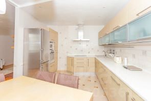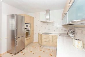 3 изолированные спальни, гостиная рядом с большой кухней 14 кв.м. Отдельная гардеробная, 2 санузла. Две теплые лоджии.
