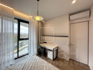 В квартире выполнен качественный ремонт с использованием премиальных материалов, полностью меблированная (освещение, техника, вся встроенная мебель выполнена под заказ).
