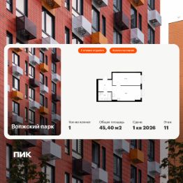 Продаётся 1-комн. квартира площадью 45,4 кв.м на 11 этаже 15 этажного дома (Корпус 6.1, Секция 2) проекта ПИК Волжский парк. Светлый просторный подъезд на уровне земли, функциональная планировка, большие окна, c отделкой.