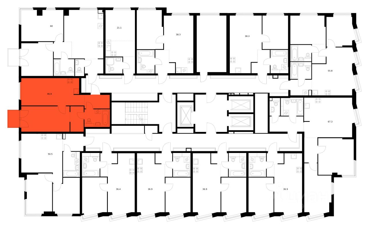 Продаётся 1-комн. квартира площадью 46,9 кв.м на 12 этаже 12 этажного дома (Корпус 1.1.2, Секция 2) проекта ПИК Кронштадтский 9. Светлый просторный подъезд на уровне земли, функциональная планировка, большие окна, предчистовая отделка.