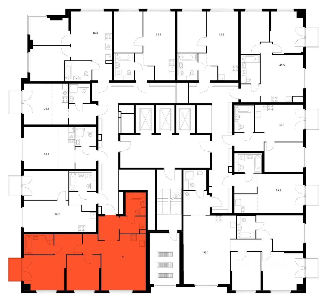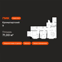 Продаётся 2-комн. квартира площадью 71 кв.м на 8 этаже 12 этажного дома (Корпус 1.1.1, Секция 1) проекта ПИК Кронштадтский 9. Светлый просторный подъезд на уровне земли, функциональная планировка, большие окна, предчистовая отделка.