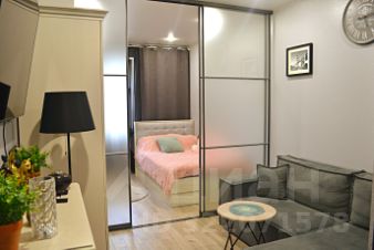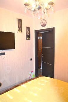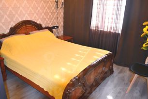 Одна из комнат разделена на спальню и гостиную.