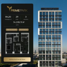 Жилой квартал Prime Park воплощает все преимущества premium-living. Престижная локация на Ленинградском проспекте, 37: - 5 мин. от Тверской улицы, Патриарших прудов и Белой площади, - 20 мин. до аэропорта "Шереметьево" или "Москва-Сити", - 4 парка — Ходынское поле, Петровский и Чапаевский парки, Березовая роща, - 4 станции метро — "ЦСКА", "Аэропорт", "Динамо" и "Петровский парк". Многократный победитель премий European Property Awards и Urban Awards, а также на протяжении пяти лет остается самым продаваемым проектом в своем сегменте. Premium-living Консьержи предугадывают желания резидентов и берут на себя выполнение практически любых бытовых задач. В квартале также есть парк-рейнджер и охрана. Для дополнительного удобства в МОПах предусмотрены почтовые комнаты, колясочные и комнаты для мытья лап домашних питомцев, комната для хранения интернет-заказов. Наличие сервисного входа для персонала позволяет разделить трафик, сохраняя приватную атмосферу в лобби. Резидентам нужно открыть только одну дверь, чтобы оказаться дома: valet-парковщики открывают дверь автомобиля и отвозят его на подземный паркинг, беллмены открывают двери при входе в башню и помогают донести вещи до квартиры, интеллектуальная система обеспечивает бесконтактный вызов лифта. Развитая инфраструктура Близость к центру Москвы, рядом крупнейший ТЦ "Авиапарк", ВТБ Арена, Мегаспорт, ВЭБ Арена, в окружении красивейших парков, включая ультрасовременный Ходынский парк площадью 25 га с панорамными качелями, набережной, фонтанами, детскими и спортивными площадками. На территории квартала предусмотрены приватный фитнес-центр с 25-метровым бассейном и спа, подземный паркинг с кладовыми, местами для хранения велосипедов, электрозарядками и детейлинг-центром для обслуживания автомобилей. На первых этажах башен расположатся кафе и рестораны, цветочный магазин, аптека, салон красоты, премиальный супермаркет и бытовые сервисы. Частный парк Общее парковое пространство квартала — 5,5 га, из них 3 га отведено под частный парк эксклюзивно для резидентов. Большой фонтан, аллеи для прогулок, крупномерные деревья, арт-инсталляции, водные глади, детские площадки и воркаут-зона создают гармоничное сочетание жизни на природе со всеми преимуществами мегаполиса. Уникальная квартирография Более 80 вариантов планировочных решений от однокомнатных квартир до двухуровневых дуплексов и пентхаусов. Панорамные окна, высокие потолки, мастер-спальни, балконы и террасы создают особенный комфорт и уют. Авторская архитектура и дизайн Четыре башни сданы, ключи выдаются в день сделки, 2 башни на этапе строительства, сдача в 2023 и 2024 гг. Уникальный архитектурный ансамбль и ландшафтный дизайн, благородные и ценные материалы в оформлении лобби, предметы искусства, арт-объекты и элементы декора, выполненные на заказ специально для Prime Park, становятся отражением яркой индивидуальности резидентов квартала.
