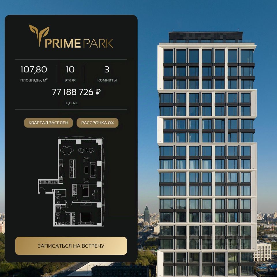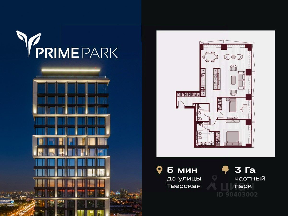 Жилой квартал Prime Park воплощает все преимущества premium-living. Престижная локация на Ленинградском проспекте, 37: - 5 мин. от Тверской улицы, Патриарших прудов и Белой площади, - 20 мин. до аэропорта "Шереметьево" или "Москва-Сити", - 4 парка — Ходынское поле, Петровский и Чапаевский парки, Березовая роща, - 4 станции метро — "ЦСКА", "Аэропорт", "Динамо" и "Петровский парк". Многократный победитель премий European Property Awards и Urban Awards, а также на протяжении пяти лет остается самым продаваемым проектом в своем сегменте. Premium-living Консьержи предугадывают желания резидентов и берут на себя выполнение практически любых бытовых задач. В квартале также есть парк-рейнджер и охрана. Для дополнительного удобства в МОПах предусмотрены почтовые комнаты, колясочные и комнаты для мытья лап домашних питомцев, комната для хранения интернет-заказов. Наличие сервисного входа для персонала позволяет разделить трафик, сохраняя приватную атмосферу в лобби. Резидентам нужно открыть только одну дверь, чтобы оказаться дома: valet-парковщики открывают дверь автомобиля и отвозят его на подземный паркинг, беллмены открывают двери при входе в башню и помогают донести вещи до квартиры, интеллектуальная система обеспечивает бесконтактный вызов лифта. Развитая инфраструктура Близость к центру Москвы, рядом крупнейший ТЦ "Авиапарк", ВТБ Арена, Мегаспорт, ВЭБ Арена, в окружении красивейших парков, включая ультрасовременный Ходынский парк площадью 25 га с панорамными качелями, набережной, фонтанами, детскими и спортивными площадками. На территории квартала предусмотрены приватный фитнес-центр с 25-метровым бассейном и спа, подземный паркинг с кладовыми, местами для хранения велосипедов, электрозарядками и детейлинг-центром для обслуживания автомобилей. На первых этажах башен расположатся кафе и рестораны, цветочный магазин, аптека, салон красоты, премиальный супермаркет и бытовые сервисы. Частный парк Общее парковое пространство квартала — 5,5 га, из них 3 га отведено под частный парк эксклюзивно для резидентов. Большой фонтан, аллеи для прогулок, крупномерные деревья, арт-инсталляции, водные глади, детские площадки и воркаут-зона создают гармоничное сочетание жизни на природе со всеми преимуществами мегаполиса. Уникальная квартирография Более 80 вариантов планировочных решений от однокомнатных квартир до двухуровневых дуплексов и пентхаусов. Панорамные окна, высокие потолки, мастер-спальни, балконы и террасы создают особенный комфорт и уют. Авторская архитектура и дизайн Четыре башни сданы, ключи выдаются в день сделки, 2 башни на этапе строительства, сдача в 2023 и 2024 гг. Уникальный архитектурный ансамбль и ландшафтный дизайн, благородные и ценные материалы в оформлении лобби, предметы искусства, арт-объекты и элементы декора, выполненные на заказ специально для Prime Park, становятся отражением яркой индивидуальности резидентов квартала.