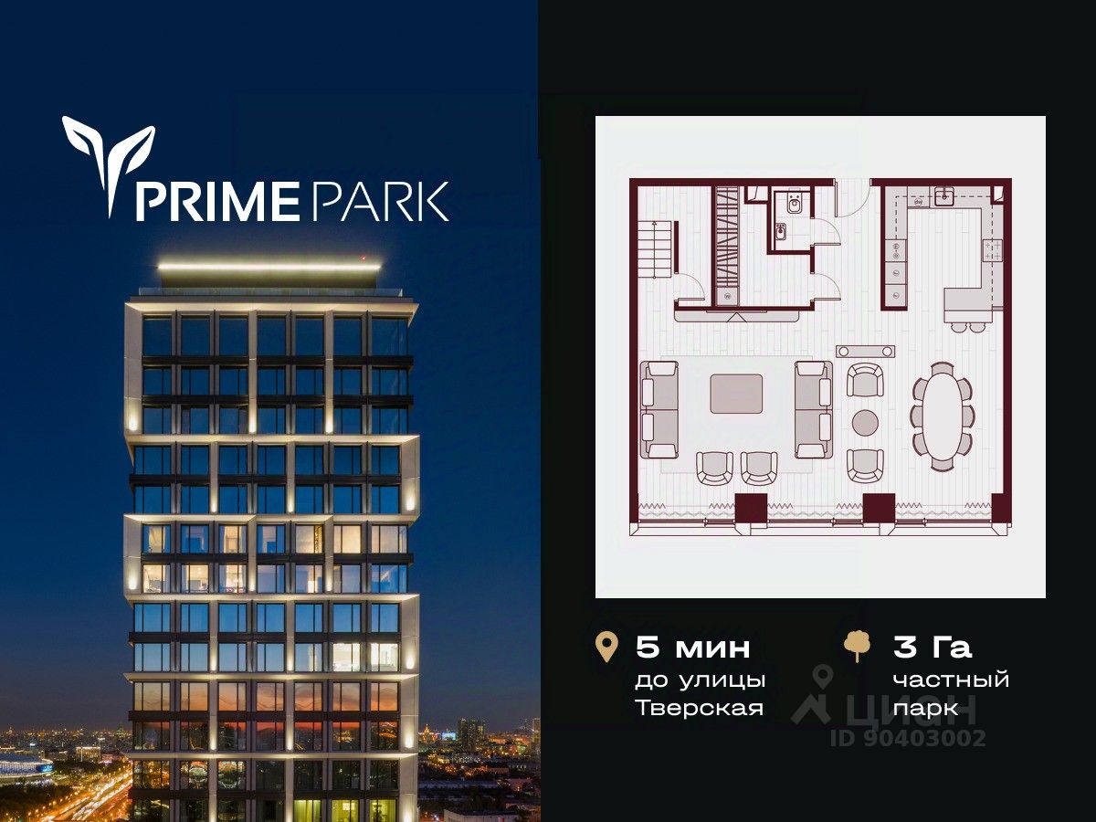 Жилой квартал Prime Park воплощает все преимущества premium-living. Престижная локация на Ленинградском проспекте, 37: - 5 мин. от Тверской улицы, Патриарших прудов и Белой площади, - 20 мин. до аэропорта "Шереметьево" или "Москва-Сити", - 4 парка — Ходынское поле, Петровский и Чапаевский парки, Березовая роща, - 4 станции метро — "ЦСКА", "Аэропорт", "Динамо" и "Петровский парк". Многократный победитель премий European Property Awards и Urban Awards, а также на протяжении пяти лет остается самым продаваемым проектом в своем сегменте. Premium-living Консьержи предугадывают желания резидентов и берут на себя выполнение практически любых бытовых задач. В квартале также есть парк-рейнджер и охрана. Для дополнительного удобства в МОПах предусмотрены почтовые комнаты, колясочные и комнаты для мытья лап домашних питомцев, комната для хранения интернет-заказов. Наличие сервисного входа для персонала позволяет разделить трафик, сохраняя приватную атмосферу в лобби. Резидентам нужно открыть только одну дверь, чтобы оказаться дома: valet-парковщики открывают дверь автомобиля и отвозят его на подземный паркинг, беллмены открывают двери при входе в башню и помогают донести вещи до квартиры, интеллектуальная система обеспечивает бесконтактный вызов лифта. Развитая инфраструктура Близость к центру Москвы, рядом крупнейший ТЦ "Авиапарк", ВТБ Арена, Мегаспорт, ВЭБ Арена, в окружении красивейших парков, включая ультрасовременный Ходынский парк площадью 25 га с панорамными качелями, набережной, фонтанами, детскими и спортивными площадками. На территории квартала предусмотрены приватный фитнес-центр с 25-метровым бассейном и спа, подземный паркинг с кладовыми, местами для хранения велосипедов, электрозарядками и детейлинг-центром для обслуживания автомобилей. На первых этажах башен расположатся кафе и рестораны, цветочный магазин, аптека, салон красоты, премиальный супермаркет и бытовые сервисы. Частный парк Общее парковое пространство квартала — 5,5 га, из них 3 га отведено под частный парк эксклюзивно для резидентов. Большой фонтан, аллеи для прогулок, крупномерные деревья, арт-инсталляции, водные глади, детские площадки и воркаут-зона создают гармоничное сочетание жизни на природе со всеми преимуществами мегаполиса. Уникальная квартирография Более 80 вариантов планировочных решений от однокомнатных квартир до двухуровневых дуплексов и пентхаусов. Панорамные окна, высокие потолки, мастер-спальни, балконы и террасы создают особенный комфорт и уют. Авторская архитектура и дизайн Четыре башни сданы, ключи выдаются в день сделки, 2 башни на этапе строительства, сдача в 2023 и 2024 гг. Уникальный архитектурный ансамбль и ландшафтный дизайн, благородные и ценные материалы в оформлении лобби, предметы искусства, арт-объекты и элементы декора, выполненные на заказ специально для Prime Park, становятся отражением яркой индивидуальности резидентов квартала.