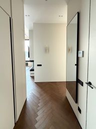 Высокие потолки 3,5 м, огромные панорамные окна с прекрасными видами на юго-западную сторону, эргономичная планировка с 2 спальнями, где одна из них мастер-спальня со своим санузлом, гостевой санузел с постирочной, просторная кухня-гостиная с дровяным камином. Качественный дизайнерский ремонт: стены - покраска, пол - паркетная доска, керамогранит, двери скрытого монтажа 2.9 м высотой, потолки - гипсокартон, канальное кондиционирование. Пентхаус полностью укомплектован мебелью и всей необходимой техникой премиального сегмента для комфортной жизни.