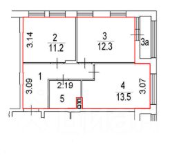 Общая площадь 49,5кв.м. плюс большая лоджия. Комнаты 11,2кв.м. и 12,3кв.м., кухня 13,5кв.м. - или сделайте комфортную для вас планировку.