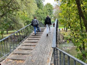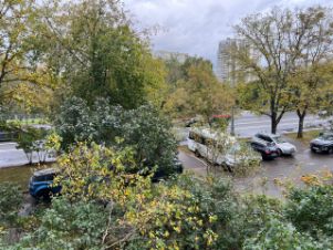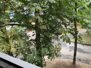 Окна выходят на две стороны: в зелёный массив на речку и во двор, поют соловьи. Спальни смотрят окнами на речку; гостиная с лоджией смотрит во двор с каштанами.