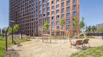 Входные группы в ЖК обустроены по индивидуальному дизайн-проекту. На ухоженной территории комплекса есть собственный огромный парк с прогулочными зонами, тихими зелёными садами и игровыми площадками. Встретиться с друзьями можно в уютных кафе.