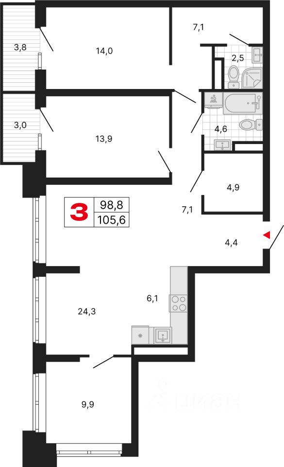 Продаётся 3-комнатная квартира в строящемся доме (Корпус 1), срок сдачи: I-кв. 2028, общей площадью 105.6 кв.м., на 6 этаже. Новый квартал станет настоящим бестселлером развивающегося района на юго-востоке Москвы.