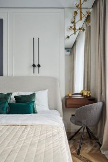 • Планировка евро-2: просторная зона гостиной + отдельная спальня + большая гардеробная.