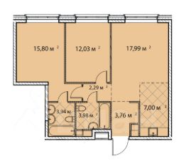 3-комнатная квартира в премиальном корпусе c высокими потолками 3,4 м.