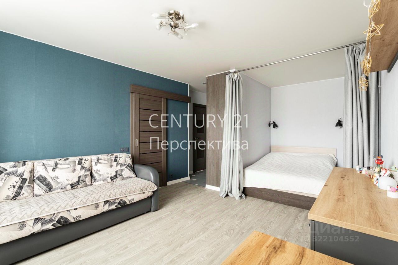 Большая и просторная комната 19,5 кв.м., есть отдельная спальная зона, где можно разместить кровать, и гостевая зона.