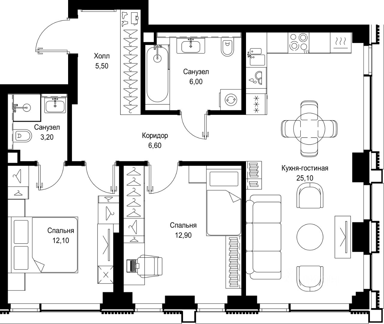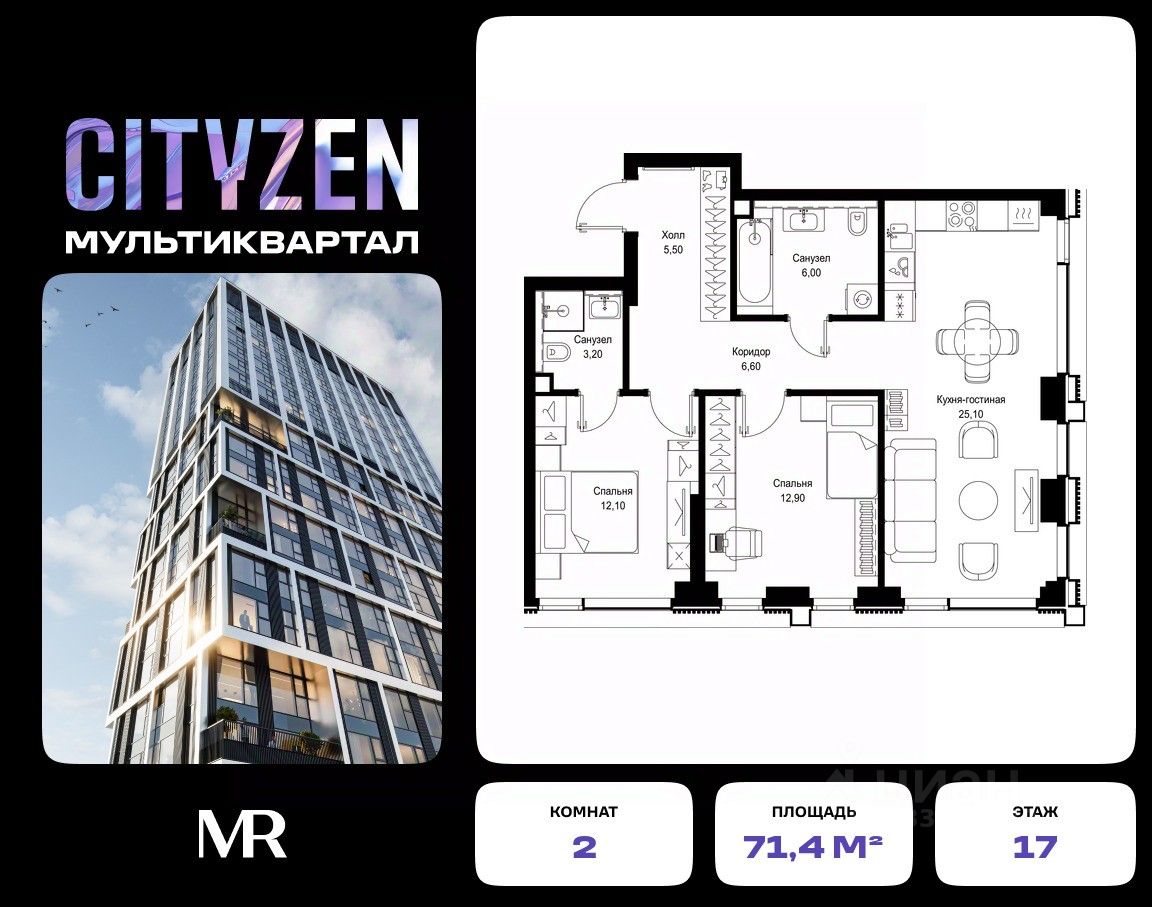 Продается 2-комнатная квартира от застройщика в жилом мультиквартале CITYZEN на 17-м этаже в корпусе #2 урбан-блока PARUS. Общая площадь лота составляет 71.40 м²
