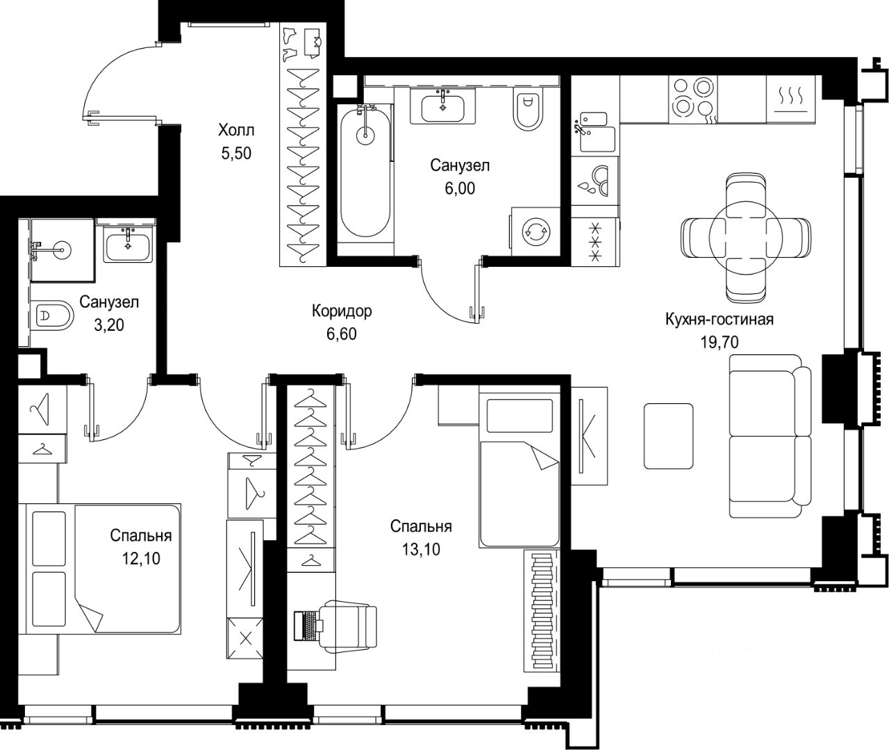 Продается 2-комнатная квартира от застройщика в жилом мультиквартале CITYZEN на 20-м этаже в корпусе #2 урбан-блока PARUS. Общая площадь лота составляет 66.20 м²