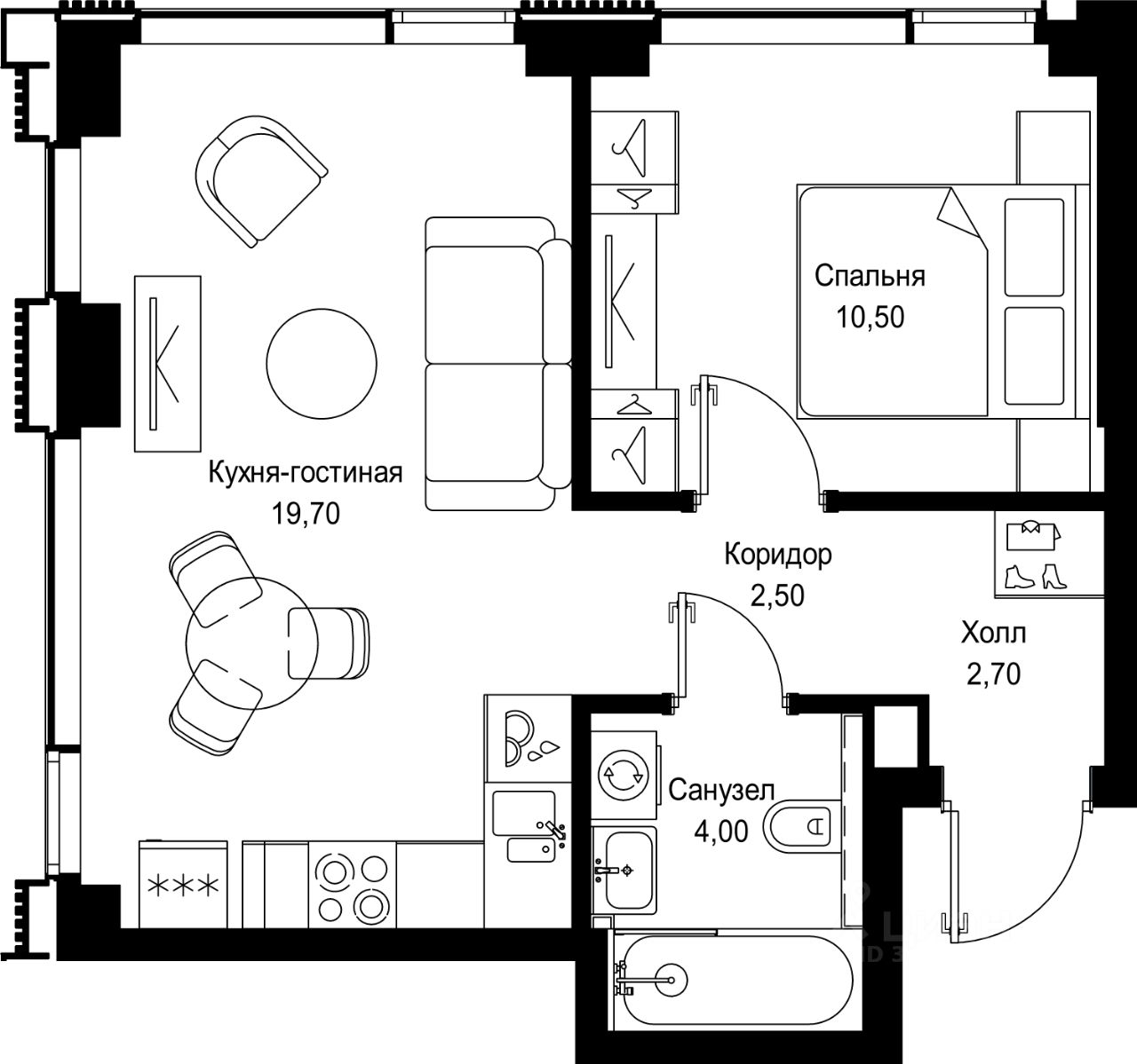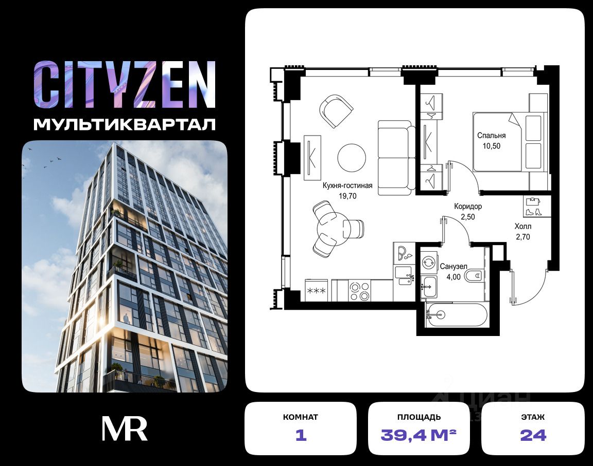 Продается 1-комнатная квартира от застройщика в жилом мультиквартале CITYZEN на 24-м этаже в корпусе #2 урбан-блока PARUS. Общая площадь лота составляет 39.40 м²