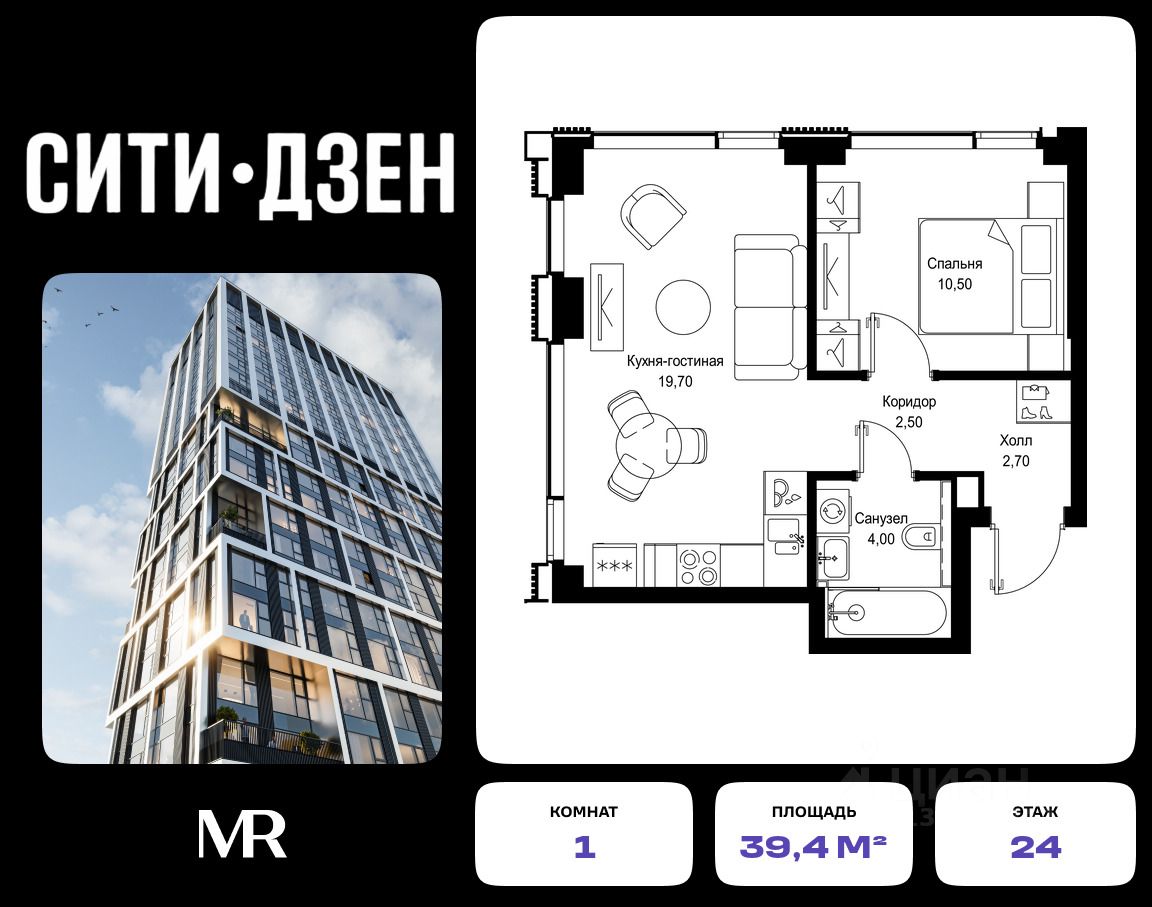 Продается 1-комнатная квартира от застройщика в жилом мультиквартале СИТИДЗЕН на 24-м этаже в корпусе #2 урбан-блока PARUS. Общая площадь лота составляет 39.40 м²