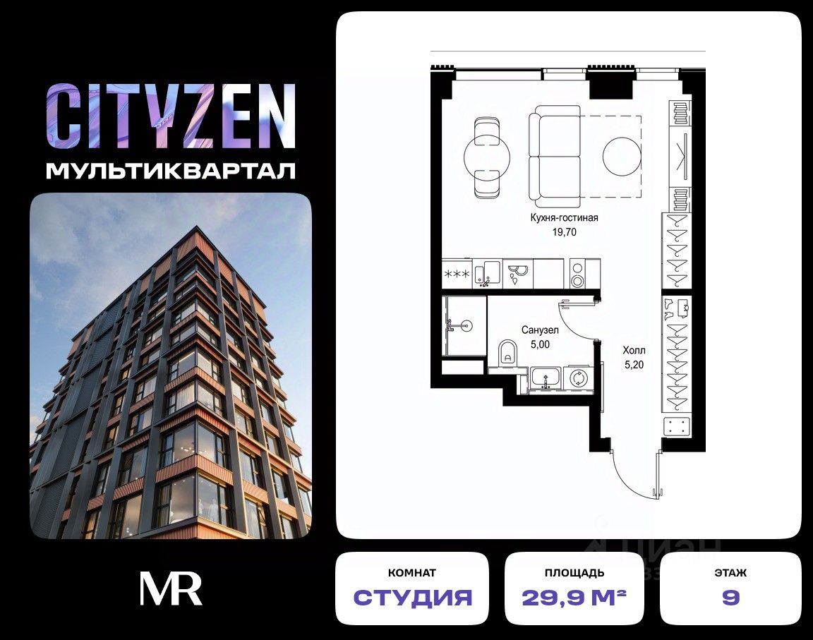 Продается студия от застройщика в жилом мультиквартале CITYZEN на 9-м этаже в корпусе #2 урбан-блока PARUS. Общая площадь лота составляет 29.90 м²