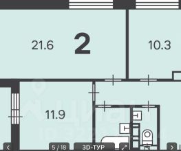 Общая площадь квартиры составляет 58,2 кв. м, из которых 33,5 кв. м занимают жилые изолированные комнаты ( 21,6/11,9), а кухня — 10,3 кв. м. Квартира расположена на высоком 2-м этаже 23-этажного дома, окна выходят во двор, что обеспечивает тишину и спокойствие.