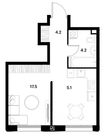 Жилая зона — 17,5 м²