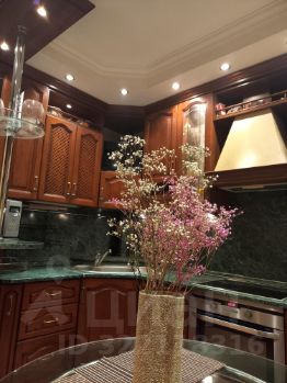 Кухонный гарнитур натуральное дерево со встроенной бытовой техникой и посудомоечной машиной Бош.