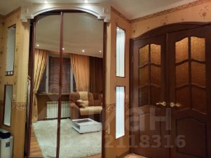 В большой комнате встроенный зеркальный шкаф, выполненный как гардеробная.