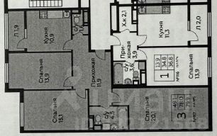 Просторная трехкомнатная квартира включает в себя кухню-гостиную, оборудованную современной техникой, две спальных комнаты, каждая из которых имеет отдельную гардеробную и просторный санузел.