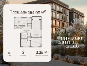 Продается видовая квартира (площадь - 154.90 кв. м., комнат - 4, этаж 5) в клубном поселке премиум-класса Vnukovo Country Club. Комплекс расположен на Западе Москвы в экологически-чистом районе в окружении Ульяновского и Валуевского лесопарков.