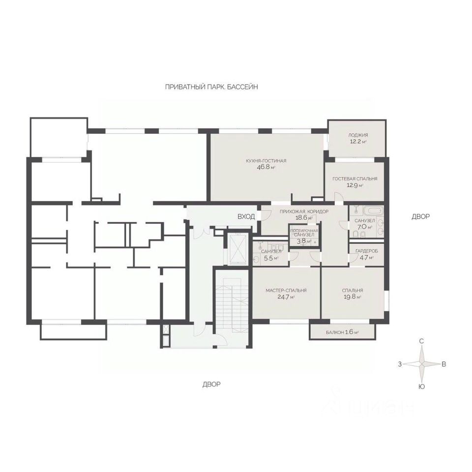 * Приватный парк с лаунж-зонами и др.