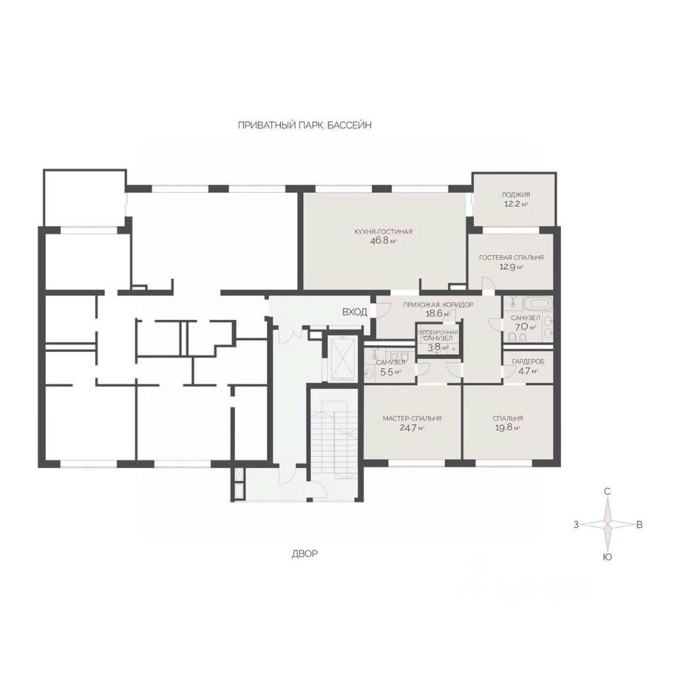 * Приватный парк с лаунж-зонами и др.