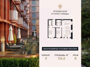 Резиденции в Парке Победы (Victory Park Residences) — это комплекс элитных семейных резиденций. Проект расположен в престижном районе Дорогомилово в одной минуте от Парка Победы, Поклонной горы и Кутузовского проспекта. Комплекс состоит из восьми элегантных корпусов, их облик разработан архитектурным бюро Сергея Скуратова. В отделке фасадов применяются натуральный камень доломит, стекло и медь. Богатая инфраструктура удовлетворит самые взыскательные запросы резидентов, к вашим услугам. Жемчужина проекта и первая в России торговая галерея "Виктори" (Victory Gallery) под управлением Гинза Проджект (Ginza Project). Это пространство, где каждая минута наполнена новыми открытиями: гранд спа с термальными источниками, салоны красоты, галерея кафе и ресторанов, выставочное пространство "территория искусств". Закрытый безопасный двор-сад "Виктори" (Victory Garden) полон возможностей наслаждаться природным пространством именно так, как вы любите. В тщательно проработанном ландшафте есть места и для уединённых размышлений, и для неспешных прогулок, и для весёлых игр с детьми, и для четвероногих друзей. В проекте представлены квартиры с панорамными окнами и высокими потолками от 3 до 3,85 метров. Квартиры с патио, пентхаусы с террасами на верхних этажах. Премиальная отделка в трех стилях на выбор.