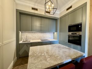 Новый, дорогой ремонт. Удобная функциональная планировка: прихожая-холл; гостевой санузел, кухня, гостиная; мастер-спальная с гардеробом и совмещённым санузлом с душевой кабиной. Кухонный гарнитур со столешницей и стеновой панелью из искусственного камня, оборудованный всей необходимой техникой: встроенный холодильник Libherr, посудомоечная машина, духовой шкаф, индукционная варочная поверхность, вытяжка. В квартире канальная система кондиционирования. При ремонте использованы дорогие отделочные материалы, паркетная доска, двери массив. Дорогая мебель. Один взрослый собственник. Без обременений. В собственности более 5-ти лет. Показ по договорённоости.