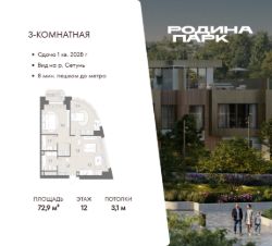 В жилом кластере Родина Парк рядом с природным заказником Долина реки Сетунь продаётся 3-комнатная квартира. Современный проект премиум-класса в Западном районе Москвы. Инновационный кластер Родина Парк представляет собой 5 жилых корпусов от 11 до 35 этажей, а также комплекс из 15 двухэтажных таунхаусов с террасами и эксплуатируемой кровлей. Также в проекте будет реализован деловой центр и многофункциональный комплекс со спортивной и развлекательной функцией. Расположение: - 8 минут до м. Давыдково - 15 минут до м. Славянский бульвар - 12 минут на авто до нового Арбата - 18 минут на авто до Москва-Сити Инфраструктура: - Рядом с проектом филиалы МГУ, МГТУ, МФЮА, а также Инновационный центр Сколково. - В 10 минутах езды находятся 6 школ из списка Forbes лучших частных общеобразовательных учреждений Москвы и области. - Свой детский сад на 95 мест, который будет построен на территории кластера. Внутреннее благоустройство: - Приватный двор-парк площадью 9000 кв.м - Детские площадки - Воркаут зоны - Ресторанная зона с летними верандами и фуд-холлом Лобби: - 5 тематических лобби в индивидуальном стиле - Лаунж-зоны - Игровые комнаты - Переговорные - Фитнес-зал - Подземный паркинг - Колясочные