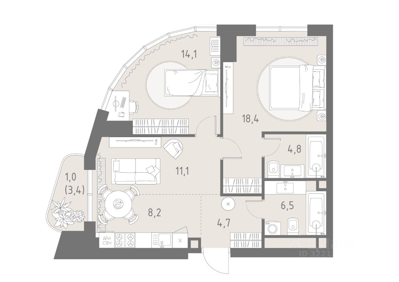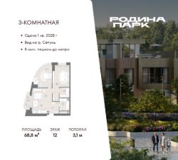 В жилом кластере Родина Парк рядом с природным заказником Долина реки Сетунь продаётся 3-комнатная квартира.