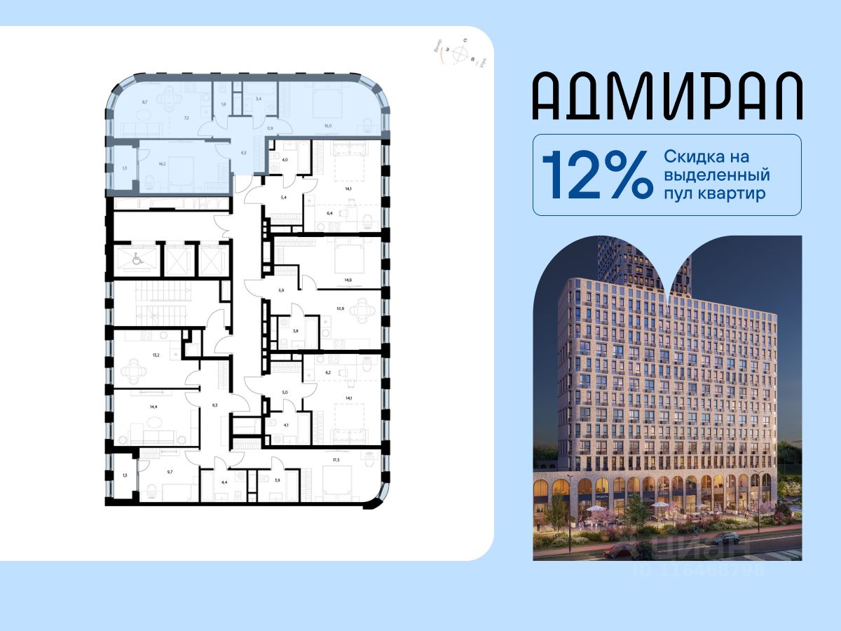 В динамично развивающемся районе Москвы, всего в 300 метрах от метро и в пешей близости от нового городского порта с протяженной набережной 13 км, свободной от автомобилей, продается 3-комнатная квартира площадью 60.00 м². без отделки. Квартира находится в корпусе жилого комплекса бизнес-класса "Адмирал", расположенного по адресу г. Москва, ул. Шоссейная, 4Д. (Застройщик - "Галс Девелопмент"). Новый амбициозный проект "Адмирал" станет частью одного из самых перспективных районов будущего - "Сити-2". В пешей доступности от современных башен Вас ждут живописные Люблинские пруды, 2 усадьбы с уникальной историей и уютный парк "Печатники" у Перервинского плёса. Район имеет отличную транспортную доступность: • 300 метров до станции метро "Печатники"; • Удобная пересадка на БКЛ и станцию МЦД-2; • 10 минут на машине до ТТК; • 15 минут до Садового кольца. Архитектура корпусов отличается динамичностью облика благодаря переменной этажности: высокие башни сочетаются с домами средней этажности. Изящным украшением становятся арочные витражи. Интеллигентный и современный стиль "Адмирала" продолжается в гранд-лобби: пастельные оттенки интерьера и фактурные элементы декора создают атмосферу безмятежного отдыха, особое ощущение простора дарят высокие потолки до 4 м и витражные окна. В домах предусмотрено от трех до шести скоростных лифтов, каждый из них спускается на любой этаж подземного паркинга и обладает удобными сенсорными панелями управления и низким уровнем шума. Благоустроенный двор площадью 5000 кв.м. украсят десятки видов гипоаллергенных растений. Здесь можно совершить приятный променад, по пути заглядывая за свежезаваренным кофе, уединиться за ноутбуком в комфортном коворкинге, занять ребенка играми в двухъярусном плейхабе или помедитировать на специальной площадке для йоги. Мягкий свет декоративных фонарей подчеркнет живописность местности, а чувство безопасности гарантируют круглосуточные системы видеонаблюдения. Дополнительные преимущества: • Высокие потолки от 2,9 до 3,25 м; • Бизнес-центр, школа и детский сад прямо на территории дома; • Подземный двухуровневый паркинг на 1955 машино-мест; • Кладовые помещения в тёплом контуре на 2м этаже; • Стрит-ритейл на первых этажах.