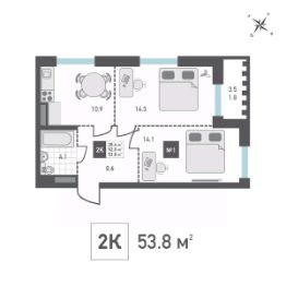 Продаётся 2-комнатная квартира в строящемся доме (Корпус 4), срок сдачи: IV-кв. 2026, общей площадью 53.8 кв.м., на 12 этаже. Жилой дом со встроенными нежилыми помещениями и подземной автостоянкой, расположенный по адресу: г. Москва, внутригородское муниципальное образование Матушкино, г. Зеленоград