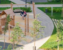 В проекте будет семнадцать домов высотой от 14 до 33 этажей, благоустроенная территория с дворами-парками, подземные паркинги, собственные детский сад и школа. Для тихого и активного отдыха появится MultiHub "Яблони" с красивым садом, большой детской игровой зоной и спортивным бульваром.