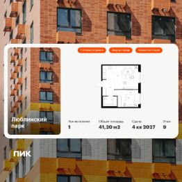 Продаётся 1-комн. квартира площадью 41,2 кв.м на 9 этаже 25 этажного дома (Корпус 18-20, Секция 1) проекта ПИК Люблинский парк. Светлый просторный подъезд на уровне земли, функциональная планировка, большие окна, c отделкой.