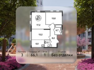 Общая площадь квартиры - 66,1 кв. м, этаж 1 из 17.