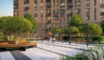 В каждой входной группе будет располагаться комфортабельная зона ожидания с возможностью зарядить электронные устройства, почтовые ящики, колясочная, акцентные пуфы и столик.