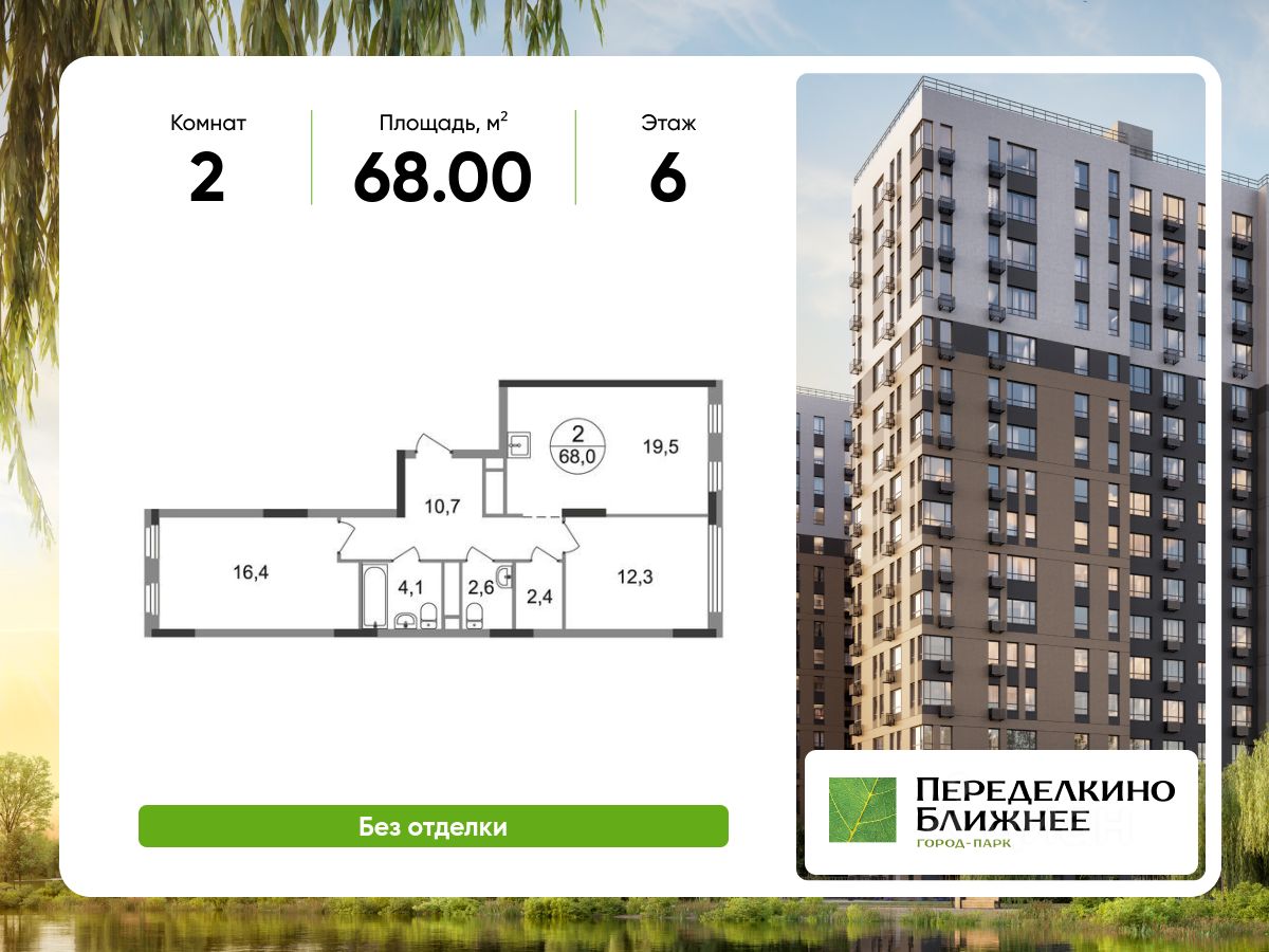 Общая площадь квартиры - 68 кв. м, этаж 6 из 17.
