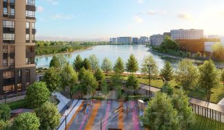 13 фаза имеет уникальное расположение и находится непосредственно на берегу Федосьинского пруда, который является сердцем города-парка "Переделкино Ближнее".