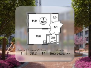 Общая площадь квартиры - 38,2 кв. м, этаж 14 из 17.
