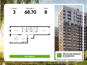 Общая площадь квартиры - 68,7 кв. м, этаж 8 из 17.