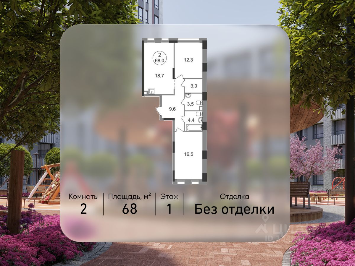 Общая площадь квартиры - 68 кв. м, этаж 1 из 17.
