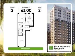 Общая площадь квартиры - 63 кв. м, этаж 2 из 17.