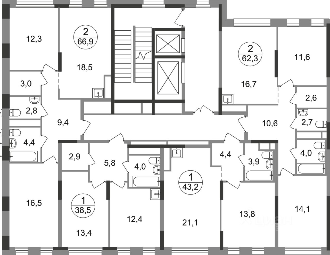 - в каждой секции 2 лифта: 1 пассажирский, 1 грузовой