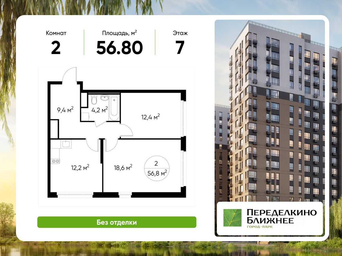 Продается двухкомнатная квартира в городе-парке "Переделкино Ближнее".